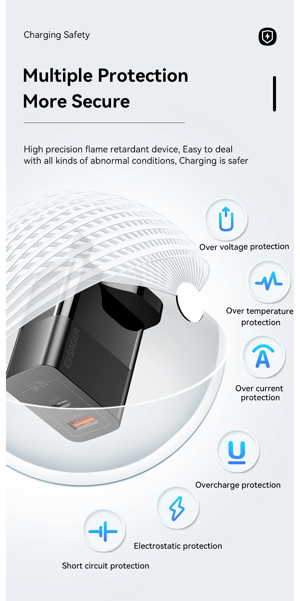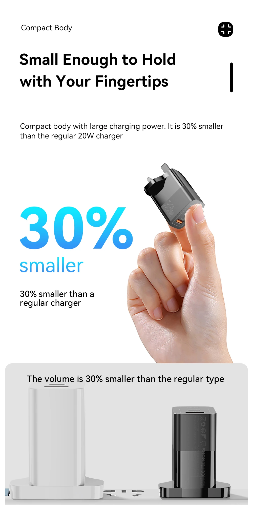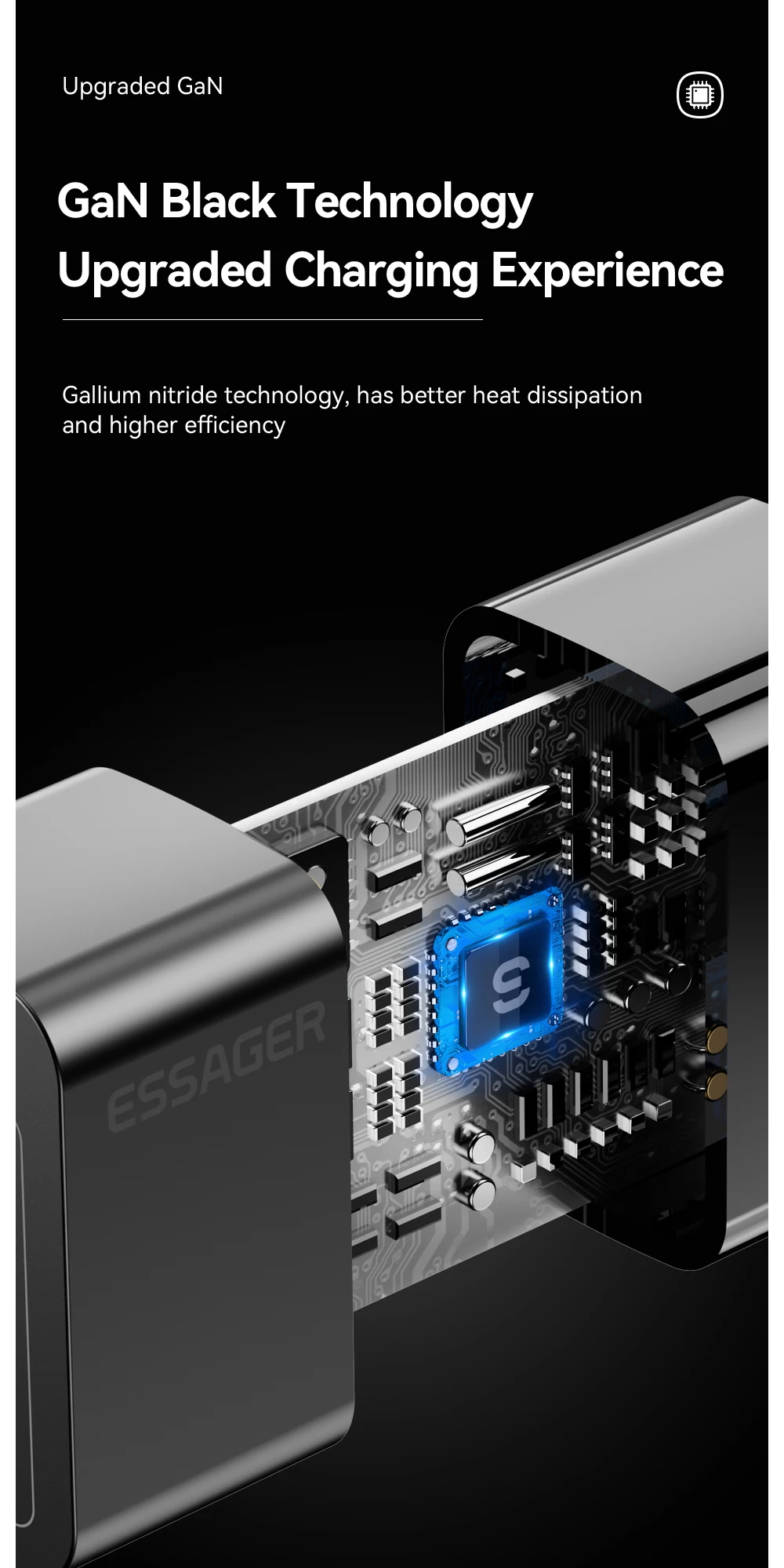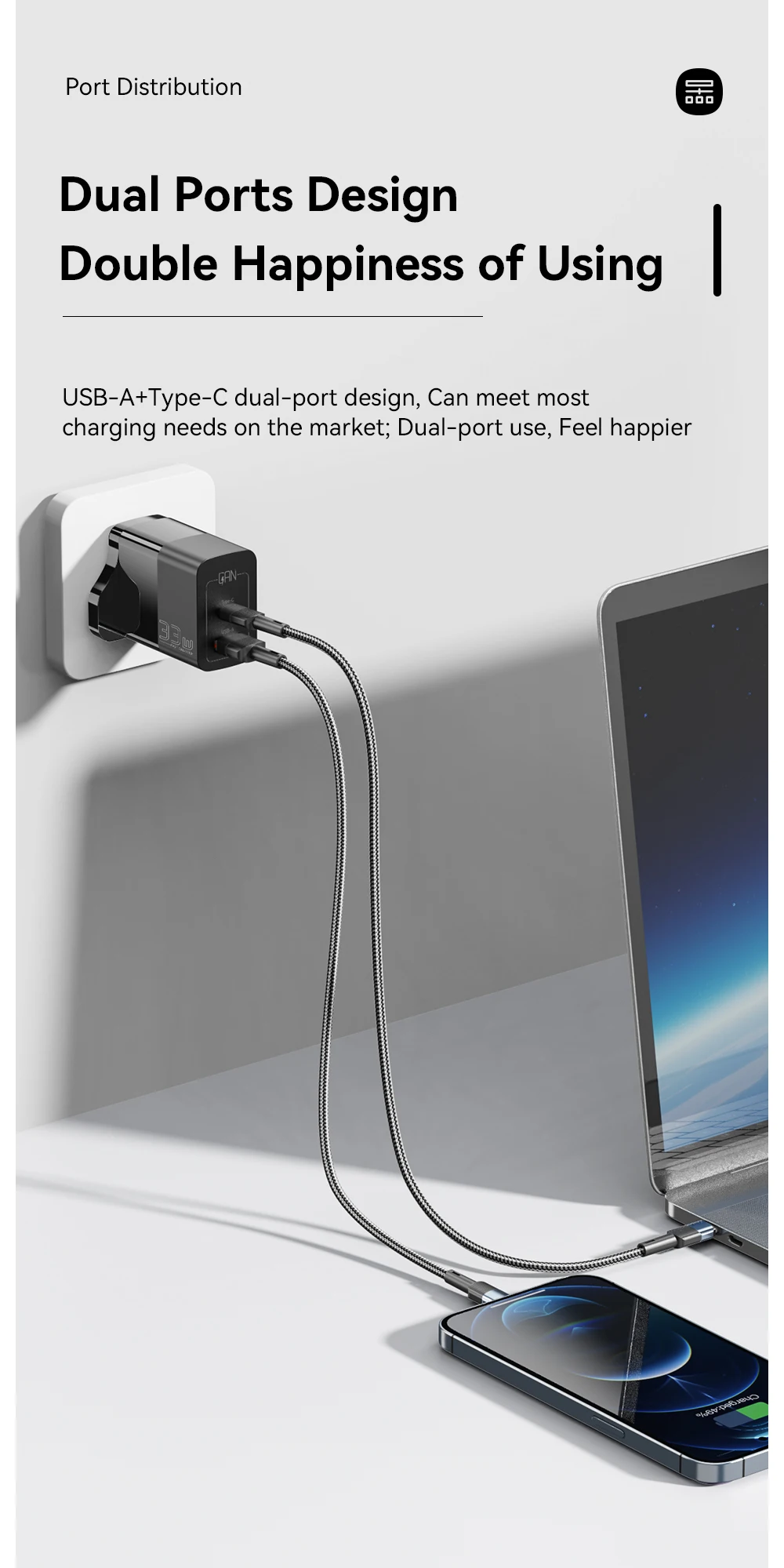 • GaN Technology :The charger uses GaN technology, which makes it smaller and more efficient than traditional chargers.