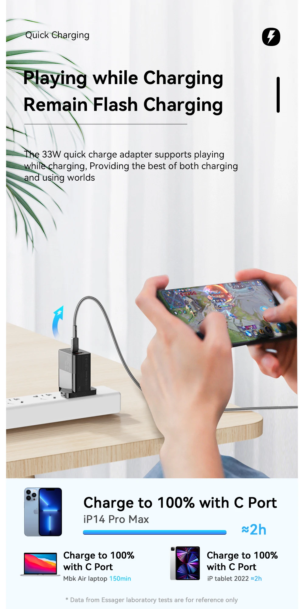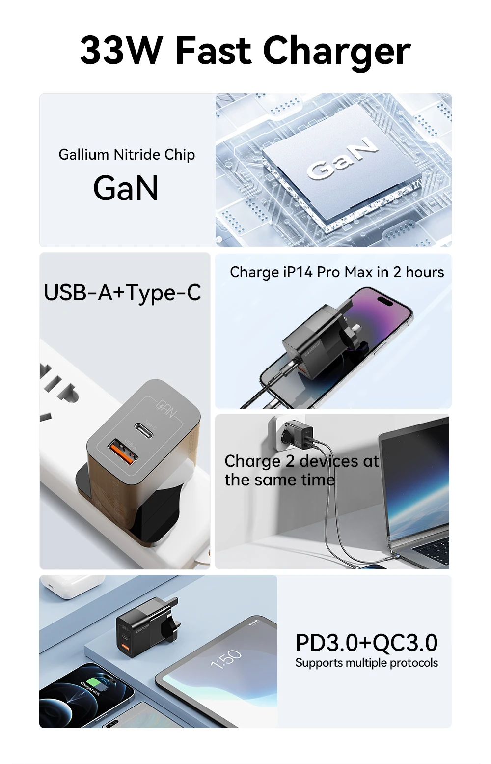 Compatible: PD 27W Fast Charging For iPhone 13 Pro Max, PD 20W Fast Charging For iPhone 12 Pro Max 13 11 XR, 33W GaN Fast Charging For Xiaomi Huawei Samsung Fast Charging, for OPPO Vivo Switch